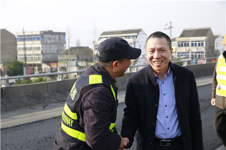 在施工現(xiàn)場,張建平對路面專項養(yǎng)護綜合督查組馮濟爐和葉榮江兩位同志說,你們就是公司的眼睛,要把握施工現(xiàn)場動態(tài),把好施工質量和安全關;你們是公司的手,要督促工程保質保量快速推進。這是一次確立科學養(yǎng)護理念、鍛煉管養(yǎng)人才,展示公司硬實力的機會。看著這兩位老同志被陽光曬得黝黑的臉龐,張建平緊緊地握住他們的手,連聲對他們說:“你們辛苦了,你們辛苦了!”