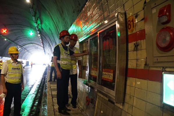 驗收小組人員佩戴安全帽,身著反光背心,從寧向隧道北洞口開始,以徒步方式開展驗收。每次途經(jīng)改建之地,他們便仔細檢測,著重對機電設(shè)備安裝調(diào)試效果、消防設(shè)施配備、緊急電話安裝、蓋板更換、瓷磚修復(fù)及清洗情況等進行仔細排查驗收。