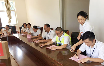 圖為投票現(xiàn)場 本次選舉,大會應(yīng)到代表人數(shù)36名,實到36名,會議以差額無記名方式進行投票選舉,最終增選孫明偉為臨海南收費所分工會委員,并推選孫明偉為該所分工會主席。 陳瑩