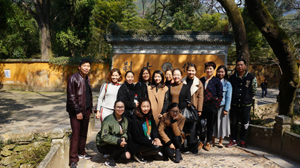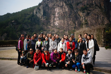 圖為第一批參加人員在瓊臺仙谷合影 上午9點(diǎn)30分,三個所共計40多位員工在集團(tuán)公司下屬的旅行社導(dǎo)游小孫的帶領(lǐng)下,從臨海結(jié)集出發(fā),去往“人與自然和合、人與人和合、人與社會和合”的“和合圣地”——天臺,游覽國清寺和瓊臺仙谷。“和合文化”是天臺山文化的精華,也是中華傳統(tǒng)文化的核心與精髓。近年來,臺州市大力推進(jìn)“和合文化”品牌建設(shè),全力打造“和合圣地”,賦予“和合文化”新的生命力。大家深處由秀美的自然山水和內(nèi)涵極豐富的佛道文化構(gòu)成的天臺山美景中,享受著自在與輕松,整個活動過程更洋溢著“健康、和諧、友好、愉悅”的濃厚氛圍。 此次“一日游”活動,不僅激發(fā)了女員工們積極向上、自強(qiáng)不息的精神,也促進(jìn)了同事之間的感情,增強(qiáng)了隊伍的凝聚力和戰(zhàn)斗力,從而營造和諧美好的氛圍。 鄭瑛芝