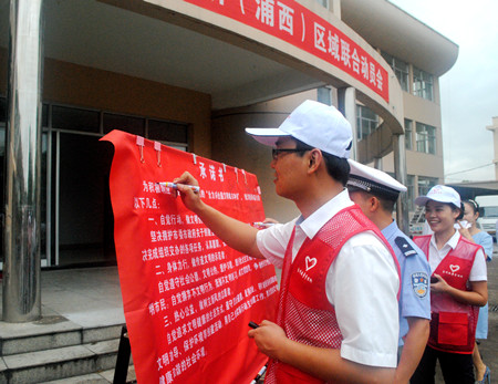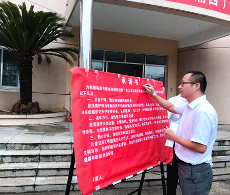 圖為公司副總經(jīng)理章海峰在承諾書上簽名 章海峰要求大家充分認(rèn)識創(chuàng)建全國文明城市的重要性,立足崗位,樹窗口形象,展行業(yè)新風(fēng),用自己的實(shí)際行動支持創(chuàng)建工作。此次創(chuàng)建工作,時(shí)間緊、任務(wù)重,需要全體人員迅速行動起來,從我做起,從細(xì)節(jié)做起,從點(diǎn)滴做起,逐層壓實(shí)責(zé)任,確保萬無一失。文明城市創(chuàng)建工作不僅僅是政府的事,更是全體市民的事,也直接體現(xiàn)了一個城市的幸福指數(shù),大家要以“一流的城市環(huán)境、一流的公共秩序,一流的服務(wù)水平、一流的精神面貌”迎接測評。