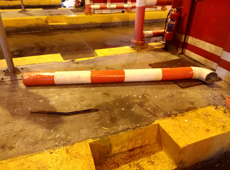大型貨車過收費(fèi)站撞斷防撞欄