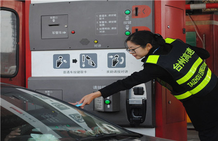 圖為收費(fèi)員文明收費(fèi)現(xiàn)場(chǎng)