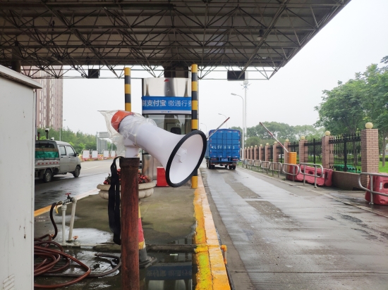 圖為入口處放置的語(yǔ)音警報(bào)小喇叭 在嚴(yán)把入口關(guān)中,該所要求入口必須有人員在崗,履行“一崗雙職”的重任,時(shí)刻關(guān)注入口情況,及時(shí)發(fā)現(xiàn)并勸阻違規(guī)車輛和人員的進(jìn)入。此外,入口顯眼處懸掛“請(qǐng)珍愛(ài)生命,禁止行人和非機(jī)動(dòng)車上高速”的警示標(biāo)語(yǔ)。入口處增添放置的管控小助手---語(yǔ)音警報(bào)器,循環(huán)播放普通話和方言警示標(biāo)語(yǔ):“行人、自行車、摩托車禁止上高速公路”。入口安全島頭和邊溝處放置水碼,防止行人、摩托車、電動(dòng)車和自行車從邊溝處和超寬車道進(jìn)入高速。而由維養(yǎng)中心人員在入口高處安裝的攝像裝置,只要行人、自行車等非機(jī)動(dòng)車輛出現(xiàn)在攝像范圍內(nèi),就會(huì)立刻傳來(lái)“警戒區(qū)域,請(qǐng)盡快離開(kāi)”的持續(xù)性警報(bào)聲。在人員的管控和設(shè)備的警示下,收費(fèi)所入口安全不斷地提升。