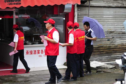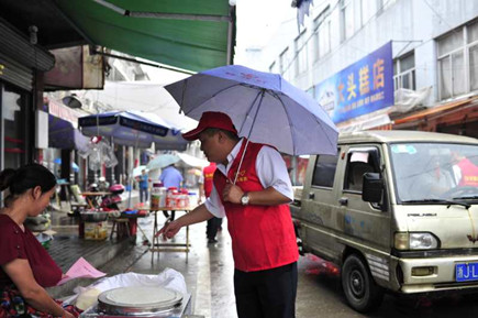 圖為志愿者隊(duì)合影 由部分非當(dāng)班黨員,青年團(tuán)員組成的第一支志愿小分隊(duì),趕赴沙埠鎮(zhèn),與沙埠鎮(zhèn)鎮(zhèn)政府一起開展創(chuàng)建全國(guó)文明城市的宣傳活動(dòng)。小分隊(duì)統(tǒng)一身著印有的 “臺(tái)州高速臺(tái)州南收費(fèi)所志愿服務(wù)隊(duì)”的紅色馬甲,在沙埠鎮(zhèn)有關(guān)同志的陪同之下,冒雨沿街分發(fā)創(chuàng)建全國(guó)文明城市的宣傳資料,并逐一耐心講解創(chuàng)建工作的有關(guān)注意事項(xiàng)。 沙埠鎮(zhèn)沿街衛(wèi)生秩序較好,但局部角落還是存在一定的臟、亂問題,通過鎮(zhèn)工作人員和志愿者們的勸導(dǎo),群眾們紛紛表示要響應(yīng)創(chuàng)建全國(guó)文明城市的號(hào)召,從自身做起,為創(chuàng)建出一份力。 王樹聲