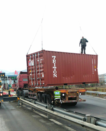 12月15日10:10分左右,一輛車牌為浙B88C06的集裝箱車在臺(tái)州南副站選擇出口車道時(shí),因變道和出口運(yùn)載汽車的長(zhǎng)掛車發(fā)生碰撞,使得未鎖牢的集裝箱箱體甩落下來,砸到護(hù)欄及進(jìn)口一輛正在通行的貨車車頭,造成護(hù)欄變形、貨車車頭受損嚴(yán)重,所幸無人員受傷。
