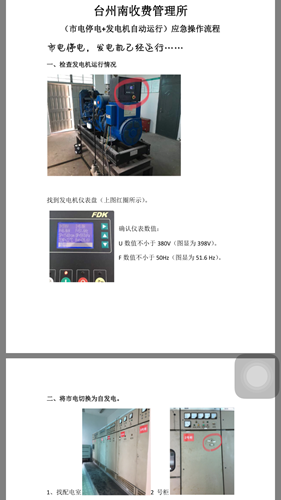 “當(dāng)市電斷開,聽到發(fā)電機(jī)響起時,只需用扳手把切換銷控切換到自發(fā)電,然后按一下各區(qū)域的用電開關(guān)即可,喏,就這幾個關(guān)鍵開關(guān)……” 近日,臺州南收費(fèi)所的兼職電工金小斌在配電房耐心對前來學(xué)習(xí)自發(fā)電操作的員工作現(xiàn)場講解,“另外,操作過程中要有安全意識,碰到異常情況停止操作?!?/span>