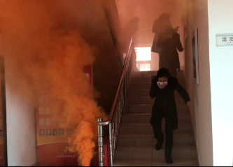 圖為逃生現(xiàn)場 在課堂上,陳教員通過近期火災事故案例分析,生動地講解了遇到突發(fā)性火災事故時的應急處理措施和如何做好高樓逃生自防自救及車輛的防火常識及如何應對車輛自燃和常見消防器材識別、使用及保養(yǎng)維護等消防安全知識。并結合單位實際情況,講述了收費所可能會遇到的幾種火災事故及應急措施。 隨后,溫嶺西收費所組織全體員工模擬親身體驗火災逃生演練。根據(jù)安排,以所長王小勇為組長,各所助、班長為成員的緊急疏散應急領導小組成立,明確逃生線路以及集合地點等演練內(nèi)容。一切準備妥當后,員工分布在收費所管理房各處,模擬日常辦公。隨著煙霧彈的蔓延,逃生演練正式開始。首先由發(fā)現(xiàn)火情者撥打模擬火災報警電話,報告起火具體位置與火勢的大小,請求支援,同時報告所長,通知人員離開現(xiàn)場。參演人員立即用濕毛巾捂住口鼻,彎下身子盡量避開濃煙,進行緊急撤離。只見疏散引導員葉俊在三樓樓梯口指揮大家撤離,統(tǒng)計疏散人數(shù),清查本層各寢室、洗漱間后撤離;疏散引導員陳豐平在二樓樓梯口指揮人員撤離,統(tǒng)計疏散人數(shù),清查本層各辦公室、寢室、衛(wèi)生間后撤離;疏散引導員李寧在所大門指揮人員撤離,統(tǒng)計疏散人數(shù),清查本層會議室,寢室后撤離。撤離人員達到指定集合地點,由狄文琦清點核實人數(shù),匯總后向所長匯報情況。所長王小勇確認全體人員安全撤離后,對本次演練進行點評,并宣布逃生緊急疏散演練結束。 通過本次演練,大家紛紛表示明白了火災預防措施,了解了常用的消防設備,懂得更多基本消防常識,并學會撲救初期火災、組織人員疏散、火災逃生自救等知識和技能,為今后的生活和工作多了一份安全保障。 陳瑩