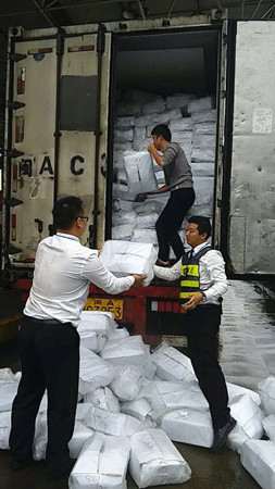 圖為工作人員幫忙搬運(yùn)掉落的貨物 這輛滿(mǎn)載海鮮的綠農(nóng)車(chē),貨物掉滿(mǎn)車(chē)道,司機(jī)一人束手無(wú)策,當(dāng)班班長(zhǎng)陳豐平在拍完綠農(nóng)照片后,叫上班員林葉輝,一起快速幫助司機(jī)一件一件地傳遞貨物。盡管每一袋貨物都十分重,但是他們?yōu)榱藥椭鷰煾堤嵩缯碡浳?,顧不得臉上交織的汗水和雨水?/span> 由于工作人員的幫助,司機(jī)離開(kāi)時(shí)一直道謝。他們對(duì)司乘人員的主動(dòng)援助,使得溫嶺西收費(fèi)所的服務(wù)不單單停留在窗口問(wèn)候上,還將延伸服務(wù)一直呈現(xiàn)。 陳豐平