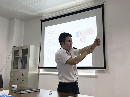 圖為授課現(xiàn)場 講座中,老師通過現(xiàn)場講解、幻燈片、實際演練等多種方式,對現(xiàn)場緊急救護(hù)CPR人工呼吸等知識和技能進(jìn)行了生動詳實地講解,有利于員工在突發(fā)事件發(fā)生后第一時間對傷病員進(jìn)行及時、正確、有效的現(xiàn)場救護(hù),把傷害降到最低。向老師強(qiáng)調(diào),一個人最重要的是健康,并梳理出我國10大致命疾病,詳細(xì)介紹慢性疾病的臨床癥狀和護(hù)理,高血壓發(fā)病機(jī)理、腦血管爆裂、腦中風(fēng)等疾病。與了解疾病相比,對疾病的防治顯得更為重要,他特別針對員工久坐長站等情況,講解了肩周炎、頸椎病等辦公室常見病的預(yù)防及改善方法,提醒大家在緊張的工作中也不要忽視自身的健康。 此次培訓(xùn),提高了員工在突發(fā)事故中的自救、互救意識和能力,并使參訓(xùn)學(xué)員初步掌握了現(xiàn)場急救基本知識和技能。 鄭霞霞