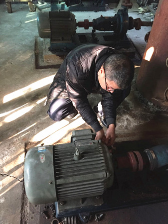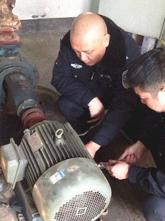 圖為工作人員修理水泵電機現(xiàn)場 因設(shè)備比較陳舊,而且原圖紙等資料不全,構(gòu)造原理無從了解,黃土嶺隧道所所長助理金衛(wèi)軍帶領(lǐng)執(zhí)勤隊,一邊推測,一邊根據(jù)水泵工作原理和電器修理經(jīng)驗尋找故障點,對設(shè)備可能出現(xiàn)的問題進行反復(fù)推敲,逐一排查,最終確定為上水位控制繼電器觸點接觸不良造成導(dǎo)電故障。經(jīng)過對觸點的調(diào)整和修復(fù),以及對軸承部位進行加油和電機、水泵平衡重新調(diào)節(jié)后,設(shè)備之前出現(xiàn)的電機震動、聲音異?,F(xiàn)象和無法自動進水等問題被一一解決,消防水泵恢復(fù)正常運作。 此次檢修工作不僅及時消除了安全隱患,確保設(shè)備隨時處于良好的待命狀態(tài),在檢修的過程中,也為隊員開展了一次良好的技術(shù)培訓(xùn)。 毛譯聆