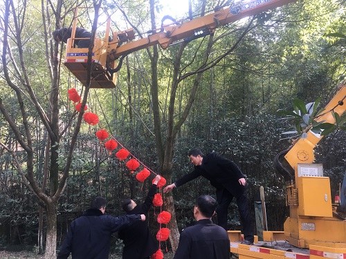 圖為掛好的燈籠 過(guò)年掛燈籠是中國(guó)古老習(xí)俗,紅色代表喜慶,圓形燈籠寓意團(tuán)圓美滿。該所工作人員利用午休時(shí)間自制大紅燈籠750盞,并拿線連成串,大家借來(lái)登高車將燈籠掛在綠蔭道兩旁以及公路下方車輛經(jīng)過(guò)的地方。遠(yuǎn)觀這掛好的燈籠,一片紅火,形成春節(jié)期間一道亮麗的風(fēng)景線。 一盞盞紅彤彤的燈籠將隧道所裝點(diǎn)得十分溫暖、祥和,注入了濃濃的年味和活力,同時(shí)也寄予了大家對(duì)新年美好的希望與祝福,希望往來(lái)的司機(jī)都能接收到這份祝福,過(guò)個(gè)平安祥和的幸福年。 毛譯聆