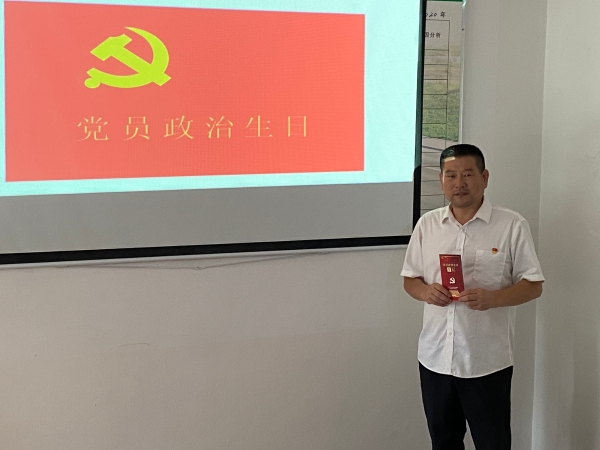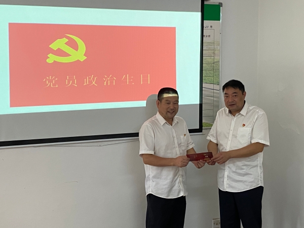 會(huì)議現(xiàn)場,黨支部書記李海福向李學(xué)來贈(zèng)送“政治生日”賀卡,并送上“政治生日”祝福,讓李學(xué)來感受到來自黨組織的關(guān)懷。