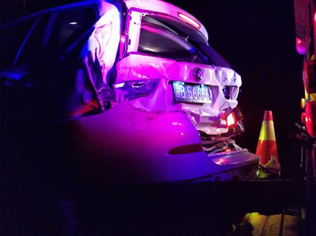 當(dāng)天18:16分左右,該隧道內(nèi)還發(fā)生了一起嚴(yán)重追尾事故,一輛寶馬X3在進(jìn)入隧道之前由于車速過快避讓不急,狠狠的與前方一輛大貨車發(fā)生追尾,被撞得慘不忍睹。所幸車上只有駕駛員一人且系了安全帶并未受傷。