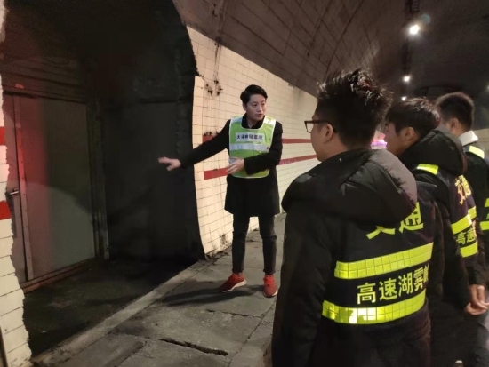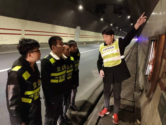 圖為羅鳴春對樂清市高速公路湖霧嶺隧道開發(fā)有限公司駐隧道南邊執(zhí)勤點(diǎn)的幾位新員工進(jìn)行培訓(xùn) 借此次隧道清洗良機(jī),所長助理羅鳴春對樂清市高速公路湖霧嶺隧道開發(fā)有限公司駐隧道南邊執(zhí)勤點(diǎn)的幾位新員工進(jìn)行業(yè)務(wù)培訓(xùn),帶他們進(jìn)入隧道熟悉隧道內(nèi)消防箱、人通、汽通的位置,并告知平時(shí)執(zhí)勤時(shí)的工作任務(wù),詳細(xì)解說了隧道封道、卡口、路面執(zhí)勤、施救的操作流程,希望他們能盡快融入工作,為大溪嶺-湖霧嶺隧道平安暢通貢獻(xiàn)力量。臺(tái)溫雙方將持續(xù)合作,共同管理,共同維護(hù)好這條隧道。 陳智慧