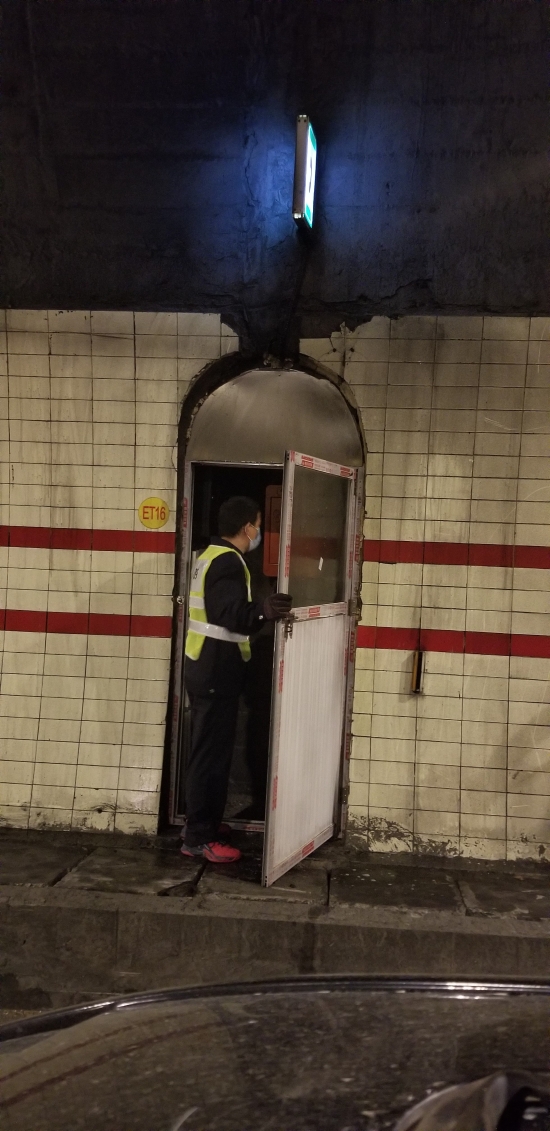 圖為工作人員在檢修緊急電話 此次隧道清洗,隧道所員工加班加點(diǎn),檢查隧道內(nèi)消防箱、檢修隧道風(fēng)機(jī)和加強(qiáng)燈回路、修理故障的語音提示,對配電房機(jī)電設(shè)備進(jìn)行除塵保養(yǎng),還檢測了火災(zāi)報(bào)警、緊急廣播、緊急電話等系統(tǒng)。