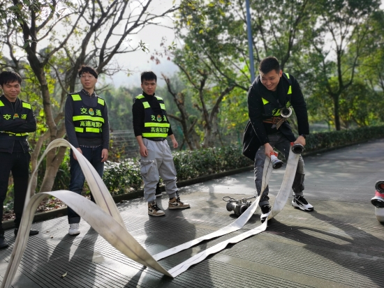 圖為樂清公司員工在水帶操作演練 大溪嶺隧道所執(zhí)勤隊(duì)就是應(yīng)急救援小分隊(duì),隊(duì)員們除了日常工作以外需要進(jìn)行不斷培訓(xùn)、演練,只有練就過硬的技能,才能嫻熟地進(jìn)行救援,確保大溪嶺-湖霧嶺隧道的平安暢通。 陳智慧