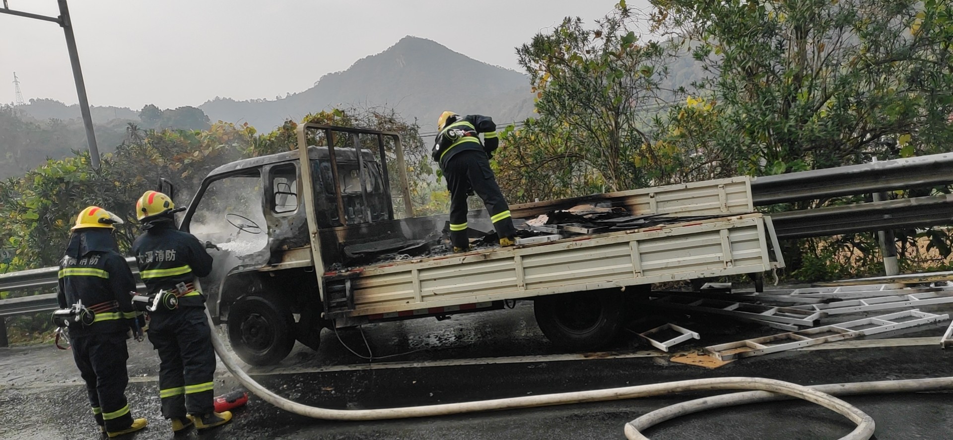 12月13日12:48中控發(fā)現(xiàn)溫向隧道入洞口600米處的情報(bào)板下濃煙滾滾,中控切換火災(zāi)圖像至監(jiān)控中心。并啟動(dòng)火災(zāi)報(bào)警系統(tǒng),按下火災(zāi)按鈕,由于著火點(diǎn)距離隧道北廣場(chǎng)最近的消火栓有500百米,隊(duì)員們出警時(shí)從倉(cāng)庫(kù)里取出數(shù)只滅火器,由于車輛未實(shí)施封道,車輛一直在事故車旁邊呼嘯而過(guò),給現(xiàn)場(chǎng)救援帶來(lái)難度,王宇鵬、湯寧光、陳幸?guī)е鴾缁鹌黠w奔去滅火,巡邏車準(zhǔn)備駛?cè)胧鹿受嚭筮M(jìn)行封道預(yù)警。