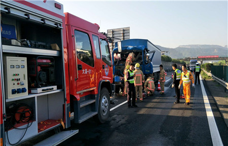 控制好現(xiàn)場(chǎng)以后,消防人員利用擴(kuò)張器展開(kāi)救援,但是成效并不明顯。7點(diǎn)左右,救護(hù)車(chē)已然到達(dá)現(xiàn)場(chǎng),但是駕駛員依舊卡在車(chē)中。為保障駕駛員生命安全,消防人員并未進(jìn)行強(qiáng)行拆除,而是召喚了一輛帶有氣泵設(shè)備的專(zhuān)業(yè)消防車(chē)趕往現(xiàn)場(chǎng),利用氣泵剪進(jìn)行破拆,經(jīng)過(guò)眾人的努力,終于將臉上鮮血直流的駕駛員成功救出,并送上救護(hù)車(chē)。7點(diǎn)30分,救護(hù)車(chē)與消防人員撤離現(xiàn)場(chǎng),施救中心人員進(jìn)行善后工作,并將事故車(chē)輛拖離現(xiàn)場(chǎng)。8時(shí)許,高速恢復(fù)通行。