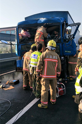 圖為消防人員解救被困駕駛員