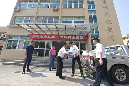 圖為公司副董事長(zhǎng)、總經(jīng)理張建平到臨海南收費(fèi)所慰問(wèn)