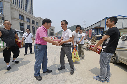 圖為公司副總經(jīng)理董阿林給高速交警送上消暑品