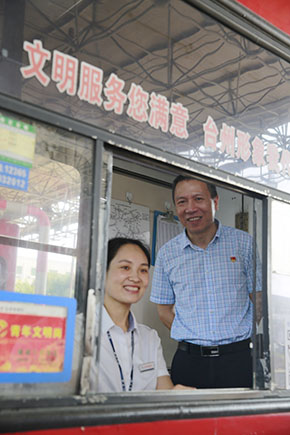 “今天車流量多嗎?你們是公司形象的代表,請(qǐng)把最優(yōu)質(zhì)的服務(wù)提供給他們?!痹谂_(tái)州收費(fèi)所一號(hào)崗?fù)だ?,張建平一邊慰?wèn)當(dāng)班收費(fèi)員,囑咐他們注意安全和休息,一邊鼓勵(lì)他們堅(jiān)持做好文明服務(wù)。他還到黃土嶺隧道所、臨海南收費(fèi)所慰問(wèn)當(dāng)班執(zhí)勤隊(duì)員和收費(fèi)員。此時(shí),各所食堂管理房正處于改造階段,他仔細(xì)查看了各所食堂和工作場(chǎng)所,了解大家的飲食和工作環(huán)境。