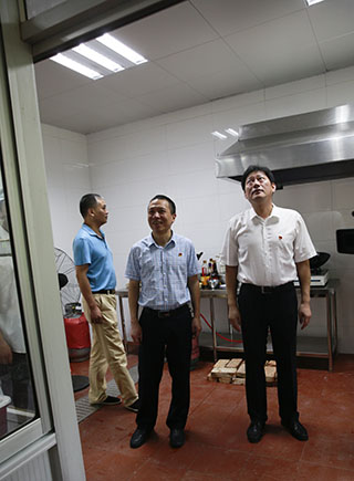 圖為公司副董事長(zhǎng)、總經(jīng)理張建平檢查收費(fèi)所食堂