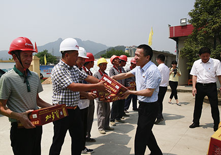 圖為公司安全總監(jiān)項(xiàng)同富在文鼎苑工地慰問(wèn)施工人員
