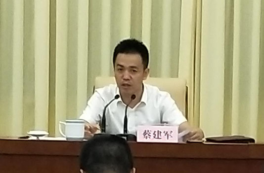圖為臨海市委常委、常務(wù)副市長(zhǎng)蔡建軍作動(dòng)員講話