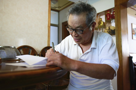 圖為老干部周瀝泉簽訂股權(quán)轉(zhuǎn)讓手續(xù)