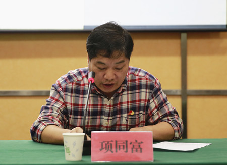圖為安全總監(jiān)項同富傳達(dá)市長張兵在安全生產(chǎn)委員會會議上的重要講話精神