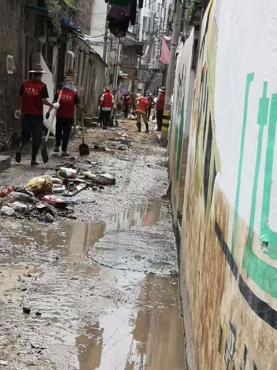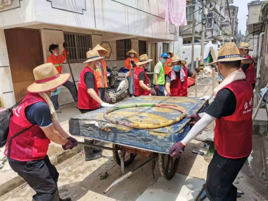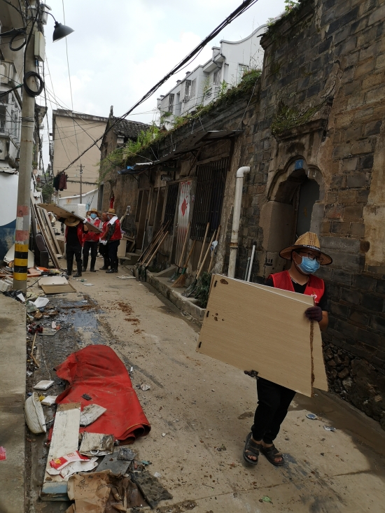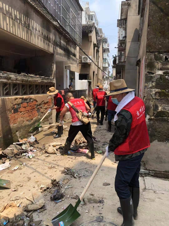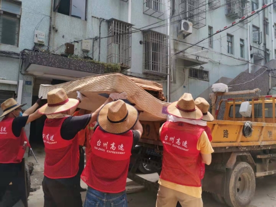 圖為臺州高速志愿者支援災(zāi)區(qū)重建現(xiàn)場 在臨海古城赤城路米篩巷,臺州高速集團(tuán)的志愿者們頂著毒辣的太陽,不怕臟不怕累,積極為災(zāi)后重建貢獻(xiàn)力量,清理路面淤泥、垃圾,保障路面清潔以及道路順暢。 真情傳遞溫暖 愛心匯聚力量, 面對災(zāi)后重建, 臺州高速集團(tuán)用實(shí)際行動, 彰顯鐵軍精神, 承擔(dān)社會責(zé)任, 展現(xiàn)使命擔(dān)當(dāng)。