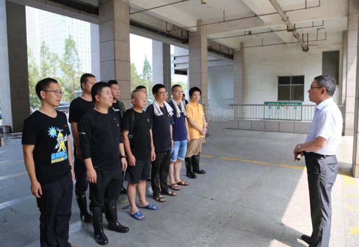 集團(tuán)董事長、總經(jīng)理陳文波勉勵隊(duì)員們“不忘初心、牢記使命”,發(fā)揮黨組織戰(zhàn)斗堡壘作用和黨員干部先鋒模范作用,積極開展志愿活動,為臨海市災(zāi)后恢復(fù)和重建貢獻(xiàn)力量。