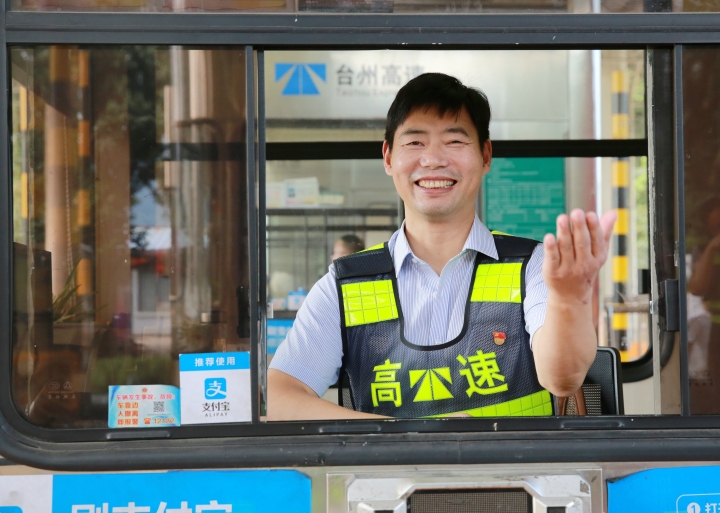 “平時看文明服務(wù)錄像的時候感覺收費(fèi)員工作很簡單,等到自己操作的時候真的是雙手不聽腦子使喚啊......”正在溫嶺西收費(fèi)所3號崗?fù)な召M(fèi)的副總經(jīng)理章海峰一邊自言自語著“體驗(yàn)感”,一邊擦了下額頭上的虛汗。