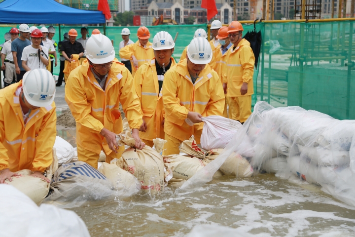 圖為模擬建筑工地面對洪水倒灌的現(xiàn)場應(yīng)急搶險