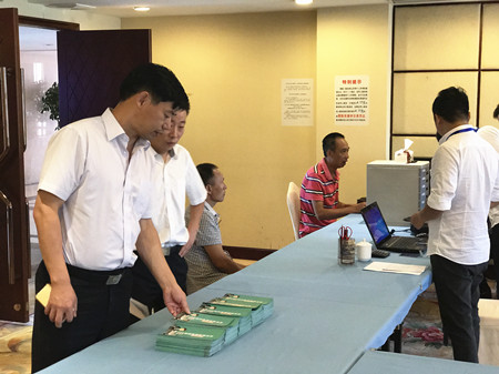圖為集團副總經(jīng)理陳保衛(wèi)正在檢查收購點宣傳資料