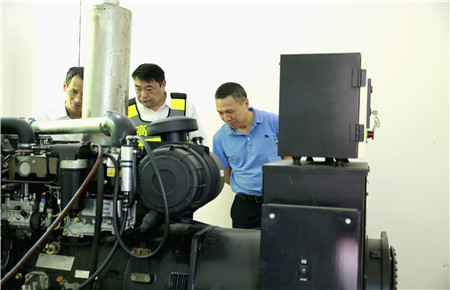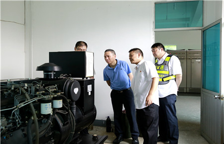 張建平察看了配電房,詳細(xì)了解工作職責(zé),要求當(dāng)班員工啟動發(fā)電機(jī)組看看保養(yǎng)工作是否到位,機(jī)電運行是否正常。