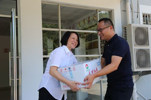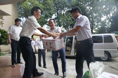 圖為集團(tuán)副總經(jīng)理陳保衛(wèi)、羅小將送清涼現(xiàn)場