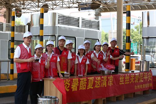 同日開始,臺(tái)州收費(fèi)所組織志愿者開展“炎暑酷夏送清涼,絲絲關(guān)愛促平安”為主題的送清涼活動(dòng),所內(nèi)黨員、入黨積極分子及業(yè)務(wù)骨干等20多名志愿者身著統(tǒng)一的志愿者服飾,在車道的安全島上拉起橫幅,搭起“便民服務(wù)臺(tái)”,免費(fèi)向過往人員送上防暑藥品和所里食堂自制的綠豆湯、青草糊等解暑飲品,喝在口中,甜在心里,司乘人員紛紛贊不絕口。