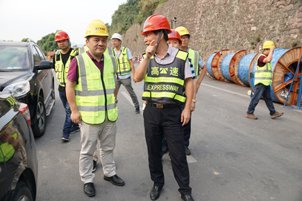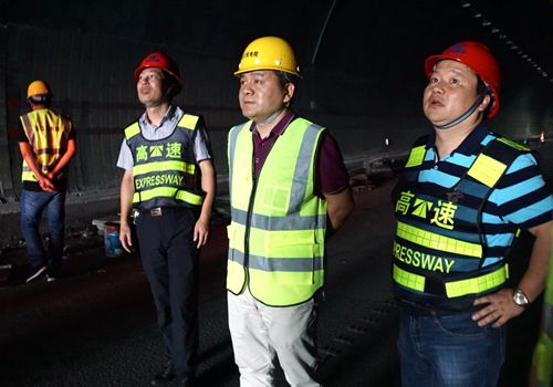 8月8日下午,省公路局高速辦副主任李飛泉、省高速辦養(yǎng)護監(jiān)管科科長侯訓田在集團總工程師江輝及市公路局領導的陪同下,赴大溪嶺-湖霧嶺隧道機電改建施工現場指導工作,查看施工進展情況。