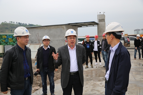 圖為公司領(lǐng)導(dǎo)陳文波調(diào)研黃巖南城互通項目現(xiàn)場