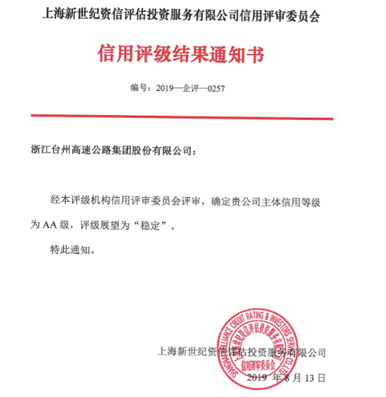9月19日,公司順利收到新世紀(jì)評(píng)級(jí)公司AA級(jí)的主體信用等級(jí)通知書,這是公司繼2017年獲得東方金誠評(píng)級(jí)公司AA級(jí)主體評(píng)級(jí)后獲得的第二個(gè)AA級(jí)評(píng)級(jí)。