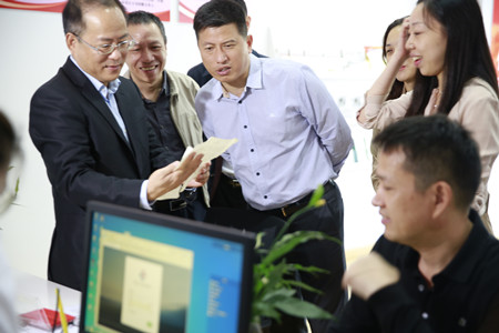 圖為市委常委、常務(wù)副市長(zhǎng)董貴波在現(xiàn)場(chǎng)與公司總經(jīng)理張建平交流