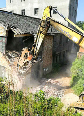 圖為炮頭機(jī)正在拆除民房