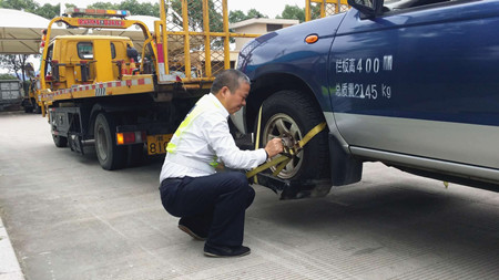 圖為工作人員參加清障車托舉輪胎拖曳比賽 早在節(jié)前,施救中心就未雨綢繆,全面檢查中心六輛清障車,主動聯(lián)系廠方并要求派專員上門服務(wù)。其中對清障車輛的液壓系統(tǒng)進(jìn)行了檢查維護(hù),添加了液壓油,更換了漏的液壓泵,修理了滲油的油缸和油管接頭,對啟動困難的清障車輛更換了電瓶和馬達(dá),對水溫過高的發(fā)動機(jī)更換了電子風(fēng)扇,并對水箱進(jìn)行清洗,確保節(jié)日運(yùn)行性能的良好,杜絕了一切安全隱患。 今年國慶、中秋雙節(jié)合并使得假期更長,并且黨的十九大也在10月份召開。為此,施救中心高度重視,不僅全面檢查清障車輛,而且召集全體人員廣泛聽取應(yīng)急應(yīng)對意見,強(qiáng)調(diào)要頂住壓力,克服困難,團(tuán)結(jié)一心,打贏這一次艱苦的攻堅(jiān)戰(zhàn)。中心要求管理人員加強(qiáng)駐勤值班,及時掌握路況信息。一線人員不請假,不調(diào)休,加班加點(diǎn)隨時待命,聽候指揮,同時采取就近用餐、提前布控等措施,為保暢道路做好萬全準(zhǔn)備。