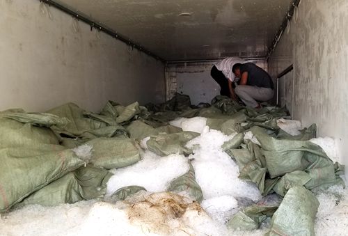 李貴陽(yáng)打開車輛后廂門,迎面撲來(lái)一陣?yán)滹L(fēng),一眼望去車廂里面全部是一袋袋的花蛤,上面還壓著袋裝的冰塊和零碎的碎冰,車廂內(nèi)部看不清楚。憑借多年的工作經(jīng)驗(yàn)和認(rèn)真負(fù)責(zé)的工作態(tài)度,李貴陽(yáng)二話沒(méi)說(shuō),直接爬上濕滑的車廂,踏過(guò)冰袋和碎冰,深入到車廂里面去檢查,把冰袋掀開后,結(jié)果發(fā)現(xiàn)下面全部是空桶。原來(lái)這樣做既可以增加貨物面積也可以使重量加重,從而達(dá)到綠農(nóng)政策的免費(fèi)通行要求。
