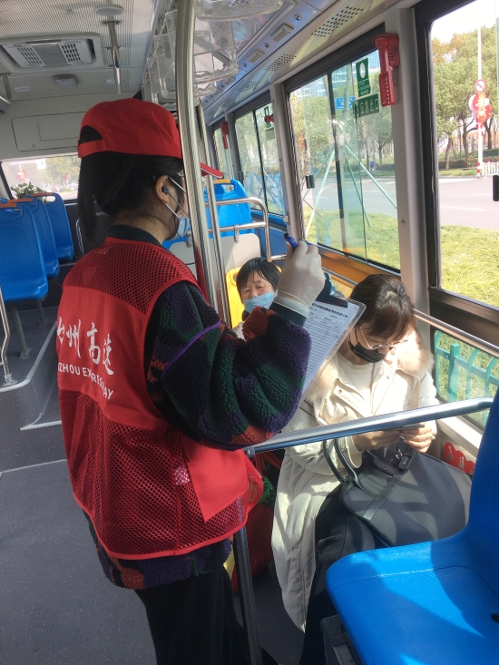圖為志愿者跟車防疫服務(wù) “我所在的一班車來回一趟是1個多小時,疫情期出行人員不多,大家上車前都會認真配合檢查?!泵g聆說道,她一次連續(xù)跟車要3個多小時。 疫情在前,國企擔當,臺州高速人會持續(xù)共戰(zhàn)疫情,哪里有需要,挺身在哪里,以行動詮釋高速責任,展現(xiàn)高速風采。