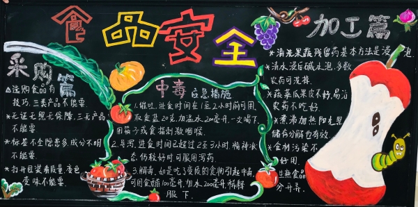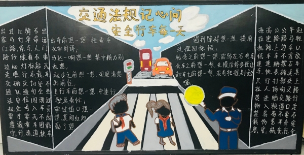 活動(dòng)前期,臨海南收費(fèi)所臨時(shí)組建五人板報(bào)小分隊(duì),充分利用空余時(shí)間搜集有關(guān)安全教育資料,對(duì)內(nèi)容、畫面進(jìn)行認(rèn)真整理、篩選。最終決定三個(gè)板塊,以提高安全教育為目的,以不同風(fēng)格主題來呈現(xiàn),從多方面、多角度設(shè)計(jì)與繪制,達(dá)到了更好的安全教育宣傳效果。 活動(dòng)開展后,參與者們分配好各自的任務(wù)后,出黑板報(bào)的工作便熱火朝天地展開了。大家利用自身的特長(zhǎng),通過粉筆字、繪畫等藝術(shù)形式,對(duì)黑板報(bào)進(jìn)行了精心的設(shè)計(jì),主題鮮明,內(nèi)容充實(shí),圖文并茂,趣味性強(qiáng),全方位、多角度地宣傳了《消防安全》、《食品安全》、《交通安全》三大主題。其中在交通安全宣傳方面,如何使交通安全內(nèi)容,更加直觀形象、簡(jiǎn)單易懂的、眾人易于接受呢?大家通過反復(fù)嘗試,決定打破傳統(tǒng)模式,避免枯燥說教,把交通宣傳教育知識(shí)融入到兒歌中,通過朗朗上口的兒歌形式,傳達(dá)一些基本的交通規(guī)則,幫助大家養(yǎng)成自覺遵守交通規(guī)則的意識(shí),提高自我安全防護(hù)能力。最后經(jīng)過大家日夜趕工,黑板報(bào)的工作在大家的共同努力下順利完成。