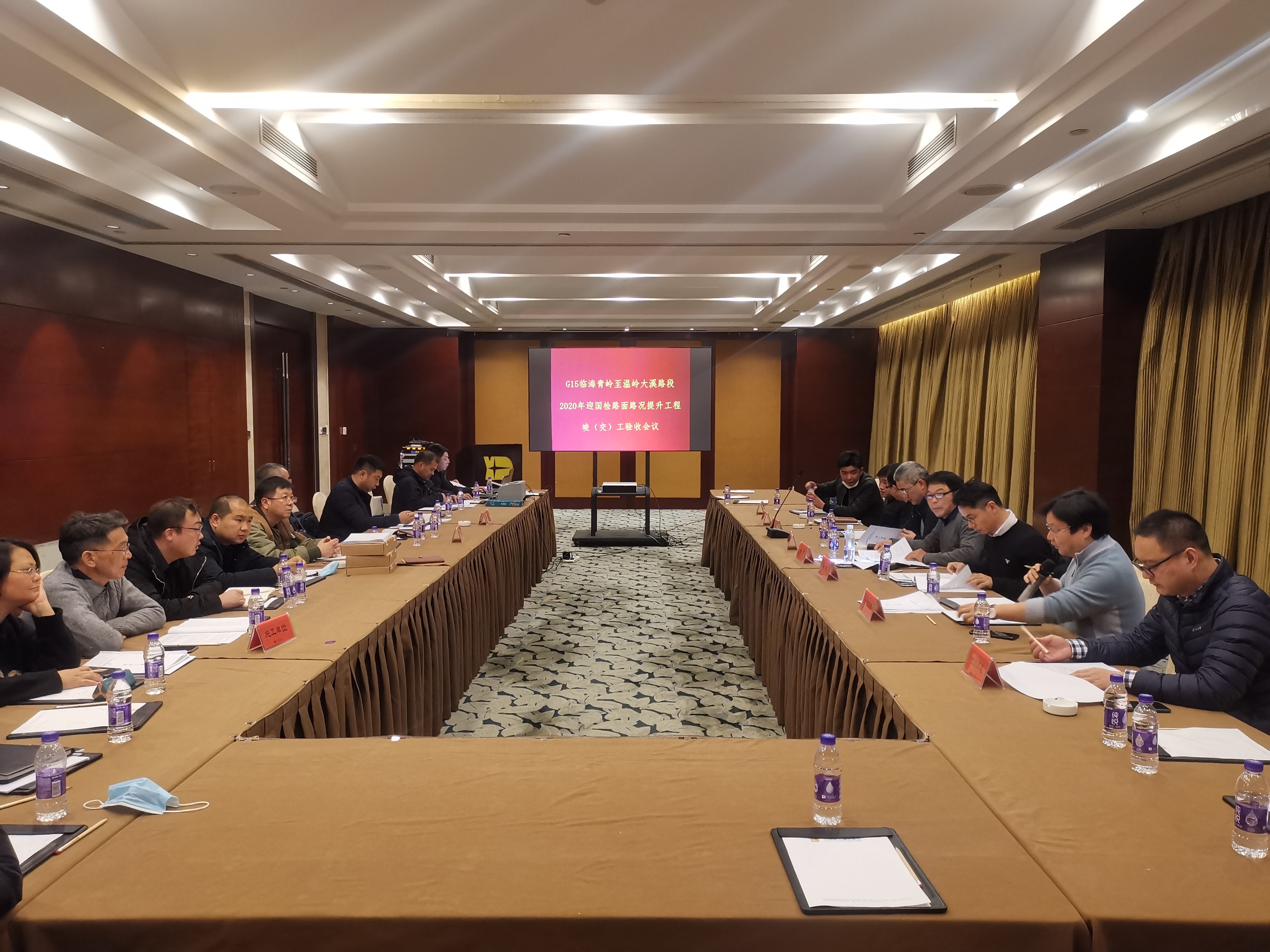 1月14日,臺州市交通工程建設(shè)事務(wù)中心、公司工程養(yǎng)護(hù)部、設(shè)計、施工、監(jiān)理、檢測單位等相關(guān)人員,以及特邀專家組成質(zhì)量評定小組對2020年迎國檢路面路況提升工程進(jìn)行現(xiàn)場核查評定,并召開為期一天的工程質(zhì)量評定及交(竣)工驗收會議。